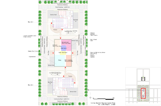 所在地 イラク マイサーン県 事業主 業務内容 12000人規模の住区計画 期間 2012年 油田会社の従業員12000人規模の住区を計画。住居は一般単身者従業員用住戸・VIP(出張者)用住戸にコンテナユニット、家族型従業員用として鉄骨造の住戸として計画。第1期として1200人規模の住居エリアに付帯施設(食堂・利便複合施設)を整備し第2期6000人、第3期12000人と段階整備計画とした。